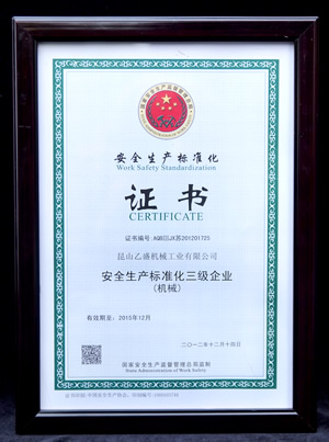 安全生產(chǎn)標(biāo)準(zhǔn)化證書